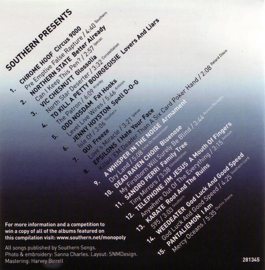 CDSouthern - UK - 2007281345 - EX-/EX15 track promo cd compilation card sleeve designRegular price £1.00 GBPRegular priceUnit price / perSale price £1.00 GBP -