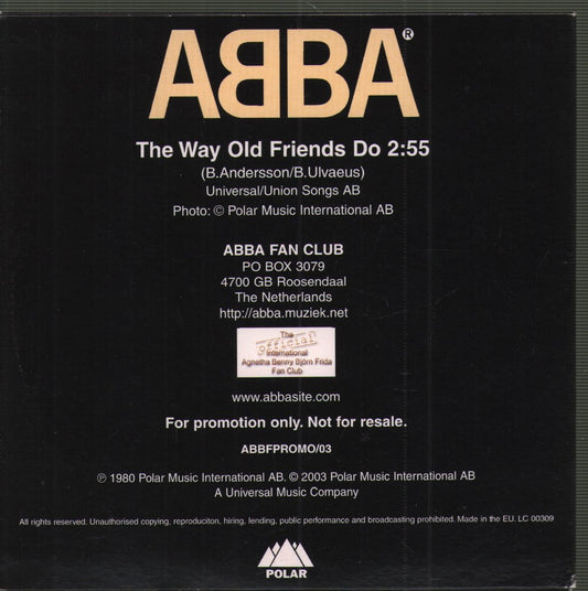 CDPolar - Netherlands - 2003ABBFPROMO03 - EX-/EX1 track live version promo CD given out at 2003 ABBA Day in Roosendaal for the fan club. recorded...Regular price £79.99 GBPRegular priceUnit price / perSale price £79.99 GBPSold out -