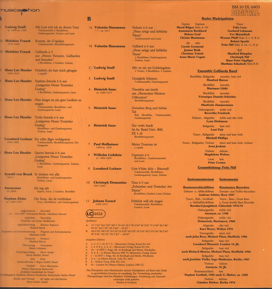 Basler Madrigalisten / Ensemble Galliarda Basel / Fritz Naf