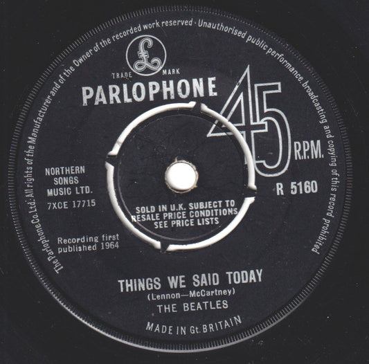 7 InchParlophone - UK - 1964R5160 - /VG4 prong Parlophone co rim with sold in uk text label designRegular price £4.99 GBPRegular priceUnit price / perSale price £4.99 GBPSold out -