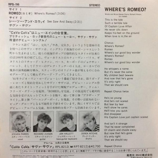 7 InchRegard - Japan - 1983RPS116 - EX/EXpic inert sleeveRegular price £6.99 GBPRegular priceUnit price / perSale price £6.99 GBP -