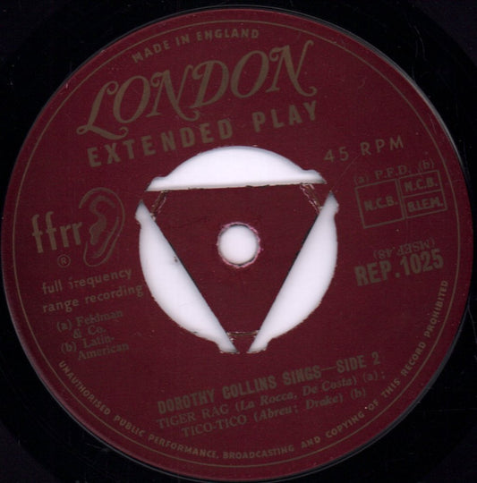7 InchLondon - UK - 1955REP1025 - /VG+4 track 3 prong tri centre gold print label design in plain card outer sleeveRegular price £150.00 GBPRegular priceUnit price / perSale price £150.00 GBP -