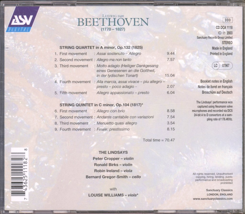 TitleBeethoven Op.132 / Op.104 |