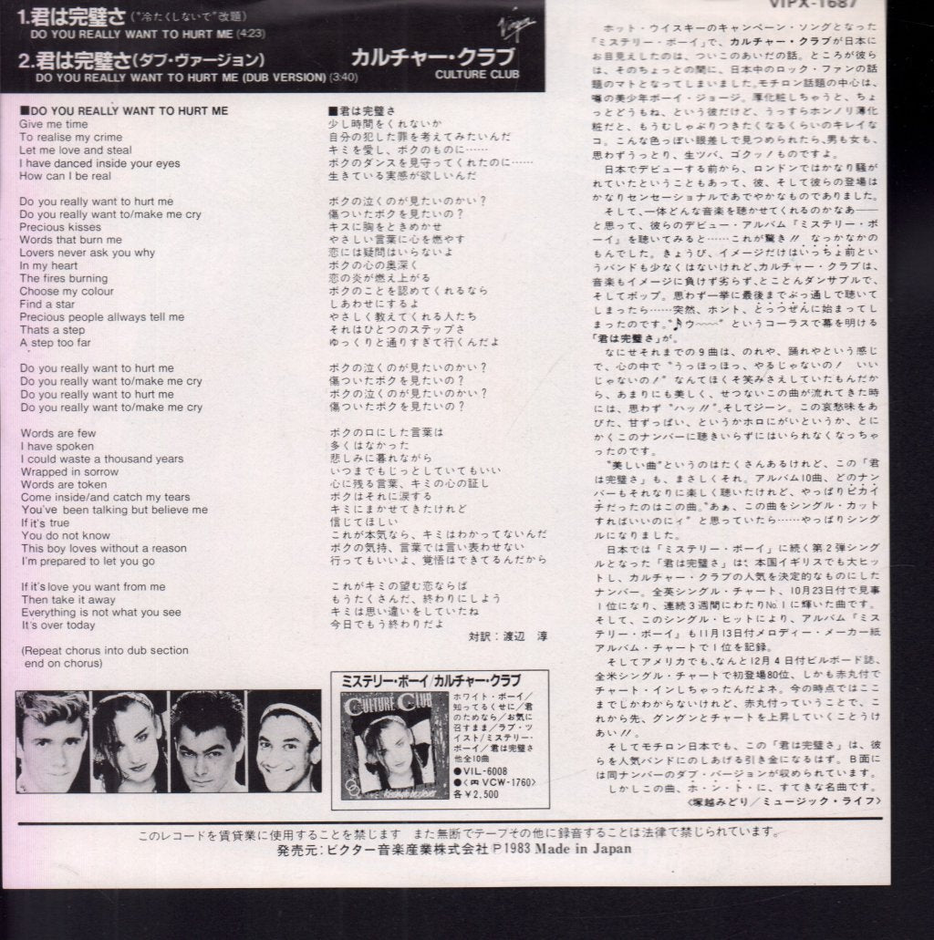 B - Do You Really Want To Hurt Me (Dub Version) = 君は完璧さ(ダブ・ヴァージョン) - 3:40 -