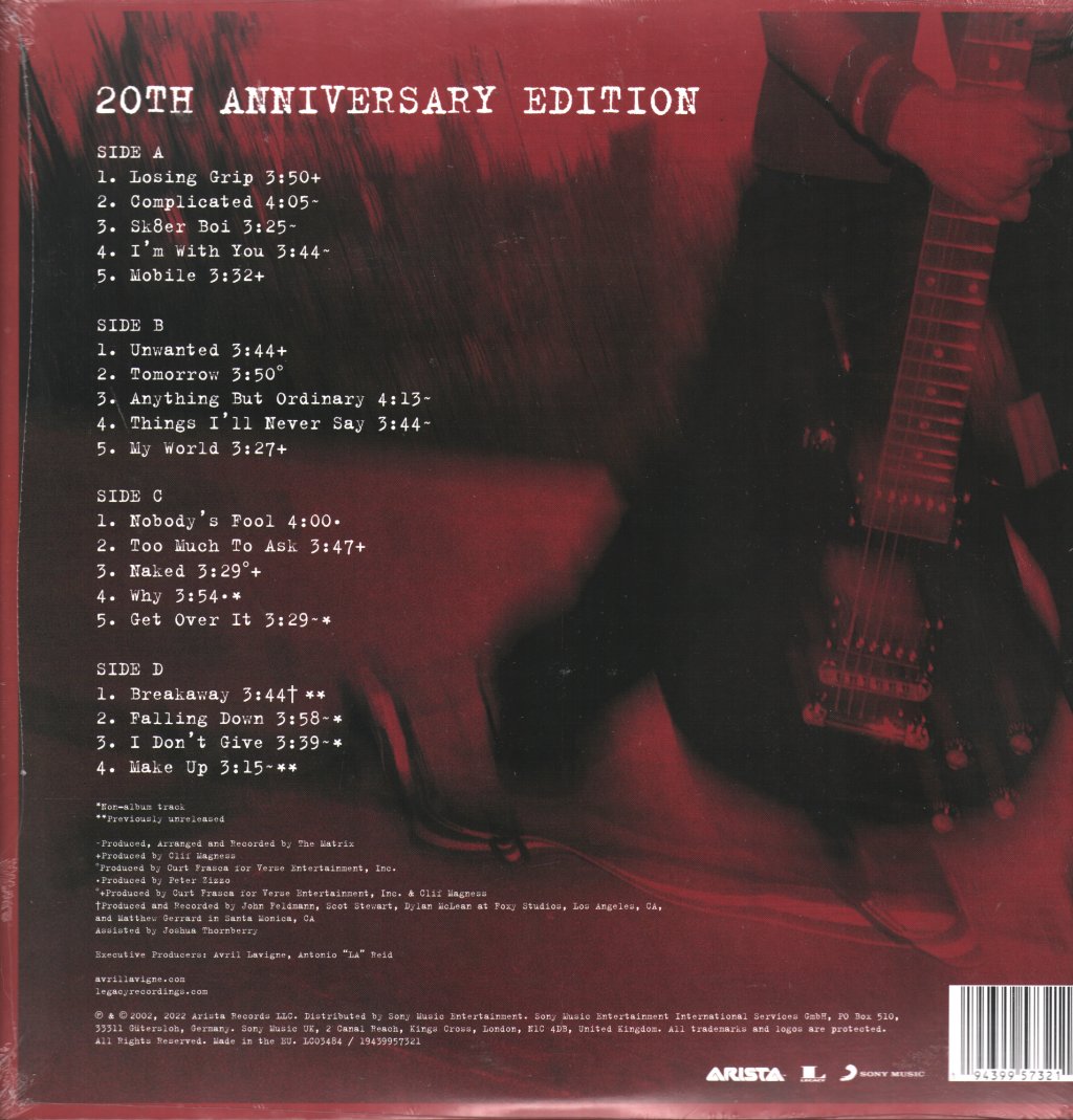Avril Lavigne ''LET GO 20th ANNIVERSARY EDITION''. 'Let Go' celebrates 20 years as one of the most influential pop punk albums of the early 2000 's. Originally released in June of 2002 'Let Go' became an instant sensation with hits such as 'Complicated' and 'Sk8ter Boi' dominating the charts and airwaves. Certified 7 X Platinum, the album has cemented it's lasting legacy in the pop punk world and beyond. To commemorate it's 20th anniversary, an expanded edition of the original album will be released featuring x6 bonus tracks, including a brand new recording of 'Breakaway', by Avril, reimagined 20 years later. A x19 song, double album, pressed on Black Vinyl. Marketing activity.