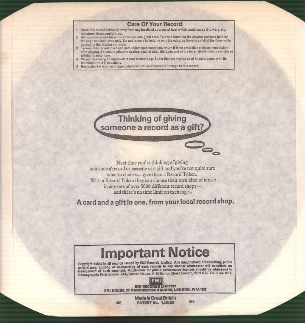 Comments30 track double vinyl stereo 80s reissue LP in side opening embossed un-numbered gatefold sleeve. With 4 band prints, fold out poster, EMI inners and -3/-6/-2/-2 matrix |